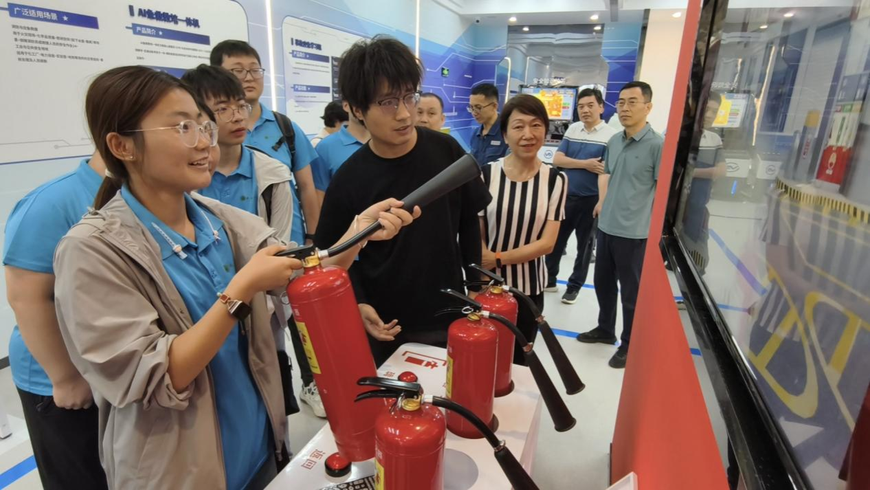在煤矿安全生产展厅,实践团成员体验了触电模拟仪,直观感受了触电的感觉,增强了安全防范意识;参与了常见灭火器操作体验,进一步巩固了自身的安全技能储备。此外,讲解员还借助矿井水害仿真模拟仪,向成员们展示了煤矿中常见的矿井水害类型、成因及其在煤层中赋存的位置,对矿井水害及其防治有了更为直观、清晰的认识。