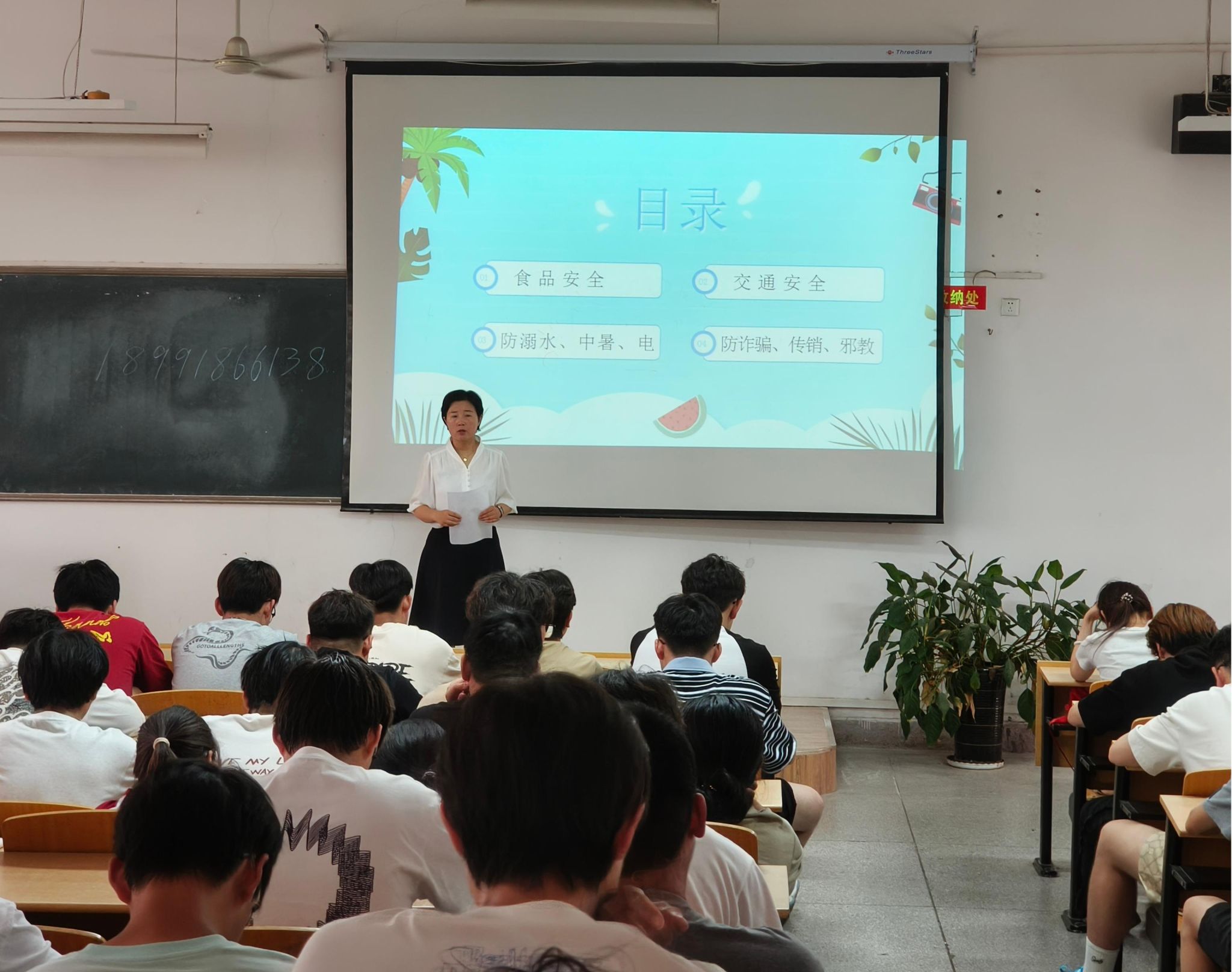 为提升2024级本科生假期安全防范意识,公司学工办主任、2024级辅导员李琳以“筑牢安全防线,共度平安暑假”为主题,7月4日-7月7日分批次在1教513、3教413、9教109教室为 9个班全体同学开展安全教育。