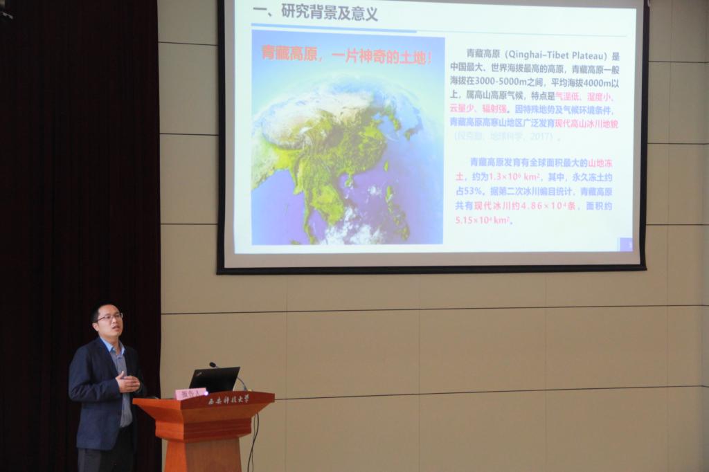 论坛开幕式由赵洲副经理主持,孙学阳经理、学科带头人侯恩科教授分别代表公司及学科为论坛致辞。本次学术论坛邀请公司毕银丽教授、申艳军教授、党小虎教授、鲍园教授、孙强教授、王鹏研究员以及师庆民副教授等7位教师分别围绕矿区微生物修复作用及其生态效应、冰雪型地质灾害孕灾机制、煤层气生物工程等内容给全体师生做了精彩的主题学术报告;研究生论坛按照地质资源与地质工程、环境科学与工程两个学科分别进行,杨天、李鹏飞、魏江波、宋志奇、孙艺文等13位同学分别就高温后页岩物理特性及孔隙结构特征研究、陕北地区不同深度岩土体氡析出特征研究、Pd基锰氧化物室温下催化氧化甲醛的性能及机理研究等研究成果做了学术交流。