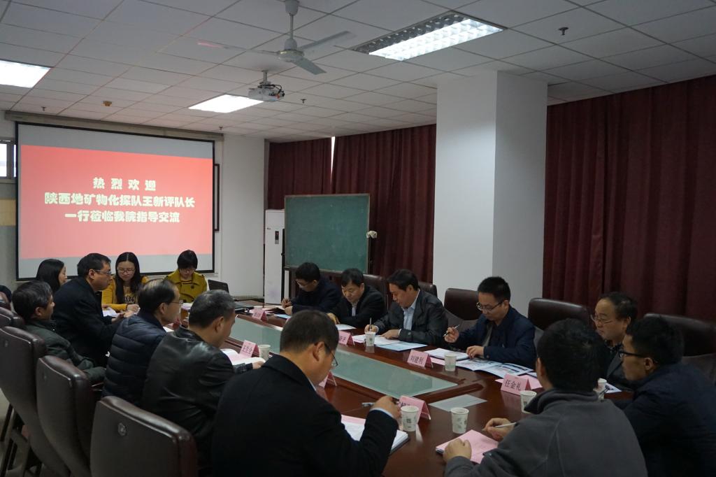 3月15日上午,陕西地矿物化探队队长王新坪、总工程师刘建利一行五人来访太阳成集团tyc122ccvip,就科研项目合作、实际生产中的问题的指导交流、研究生教学实习基地等方面展开座谈。太阳成集团tyc122ccvip经理王生全、副经理薛喜成、唐胜利以及资源勘查系部分教师参加了座谈会。王生全介绍了公司、公司的发展历程,并就公司学科设置、科研项目情况以及公司产品等方面情况进行了介绍。王新坪和刘建利介绍了陕西地矿物化探队的基本情况、公司的业务领域和公司的发展规划。双方针对申请项目、科研合作、仪器研发使用和员工教学就业实习基地等方面进行了深入的交流,与会老师还就物探的研究方向、仪器设备等情况进行了探讨。王新坪表示,希望今后在科研生产方面双方进一步加强合作交流、优势互补,用扎实的理论指导实践生产,实现合作共赢。