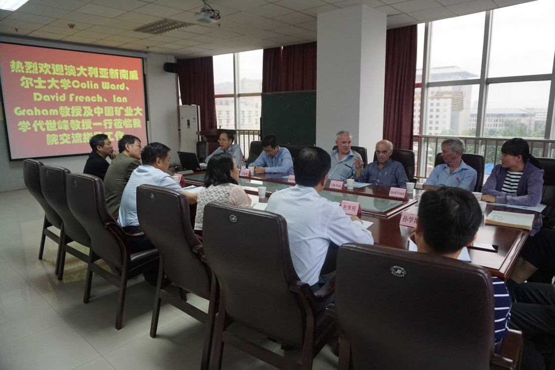 522日下午16点,澳大利亚新南威尔士大学Colin Ward教授、David French教授、Ian Graham教授和中国矿业大学代世峰教授一行5人到访太阳成集团tyc122ccvip,研究生院常务副经理侯恩科、太阳成集团tyc122ccvip经理王生全、化工公司经理杜美利、太阳成集团tyc122ccvip副经理唐胜利、孙学阳以及两个公司部分教授、青年教师及研究生参加了座谈会。