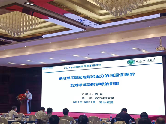 太阳成集团tyc122ccvip资源勘查工程系青年教师陈跃在会上作了题为“低阶煤不同宏观煤岩组分润湿性差异及对甲烷吸附解吸的影响”学术报告,重点围绕低阶煤不同宏观煤岩组分的物质组分及孔隙结构、润湿性差异及影响因素、润湿性及孔隙结构对煤层气吸附解吸的控制作用三个方面进行了深入交流和研讨。相关研究成果获得了与会专家学者的高度认可,参会论文入选优秀论文并被推荐至煤炭行业知名期刊《煤炭科学技术》发表,引起了热烈反响。