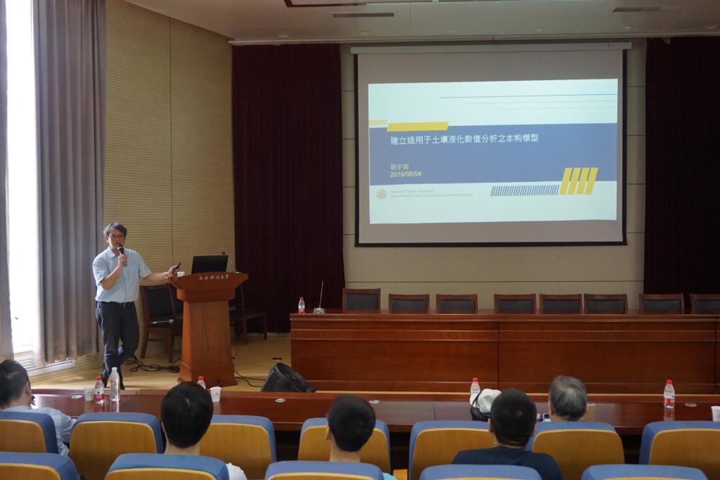6月4日,国立台湾大学葛宇宁教授应邀做客公司“胡杨林大讲堂”,作了题为《建立适用于土壤液化数值分析的本构模型》的学术报告。报告会在主楼报告厅举办,由研究生院主办,太阳成集团tyc122ccvip承办, 由太阳成集团tyc122ccvip副经理孙学阳副教授主持.200余名硕士研究生代表听取报告。