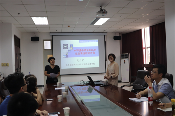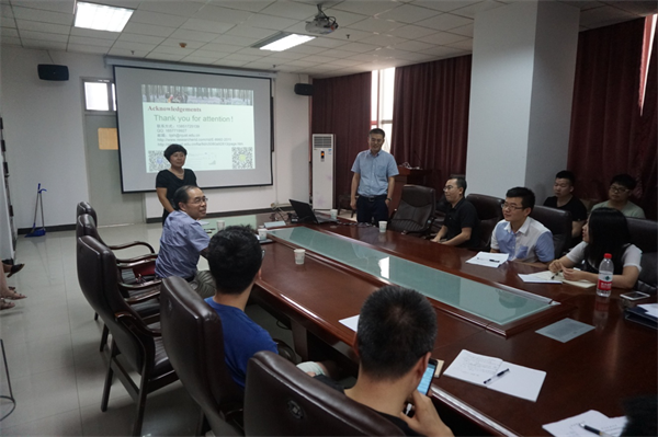 李建生教授强调水资源短缺和水环境污染是目前世界各地普遍存在的现状,微污染物高效去除是当前的重要课题,并详细地介绍了中空/多孔纳米材料的应用。范文宏教授通过自身的研究经历,详细介绍了纳米二氧化钛这种十分重要的无机材料及其在水环境中产生的生物效应。两位教授分别就所研究所的领域与员工们展开探讨与交流。