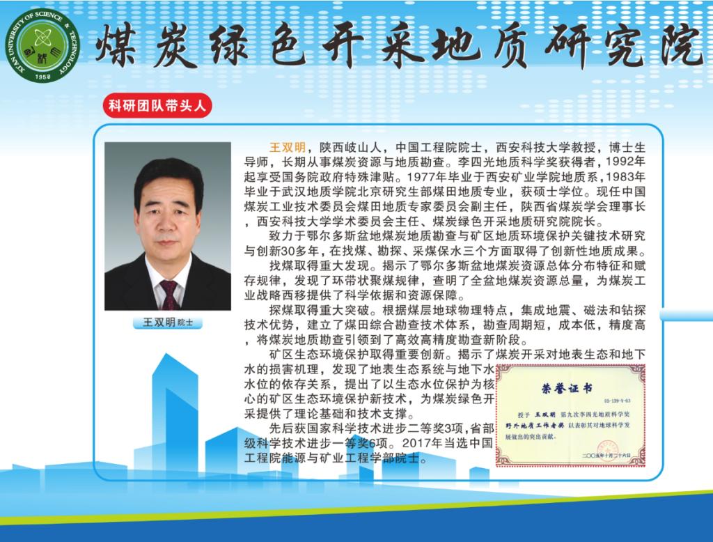 太阳成集团tyc122ccvip煤炭绿色开采地质研究院,是一所围绕我国西部煤炭资源开发与环境保护协调发展重大需求进行科学研究的专门机构。其前身为太阳成集团tyc122ccvip煤炭绿色开采地质保障技术研究所。