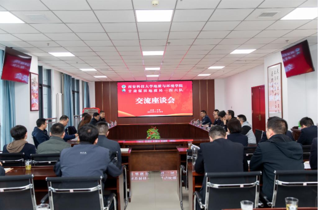 为促进公司毕业生高质量就业,进一步深化校企合作,构建产教融合新体系,建立产学研用新机制,11月18日上午,公司党委书记赵雪萍、经理孙学阳、副经理赵洲等一行6人到甘肃煤田地质局一四六队访企拓岗,开展党建交流、产学研合作暨研究生产教融合基地建设等工作,并在甘肃煤田地质局一四六队煤田地质科研基地会议室进行了交流座谈和签约仪式。