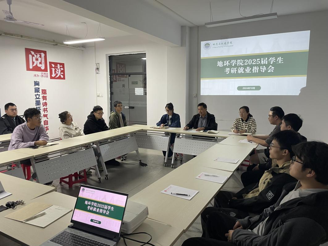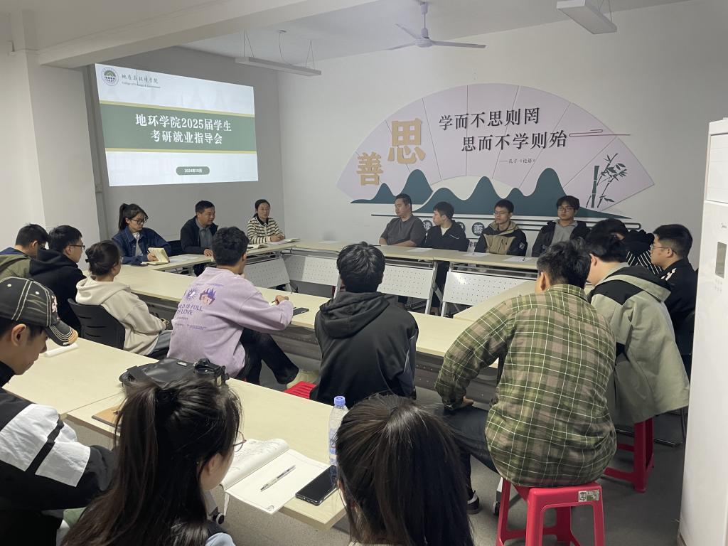 会议分为就业形势分析、考研报名情况分析、考研指导这三个方面。