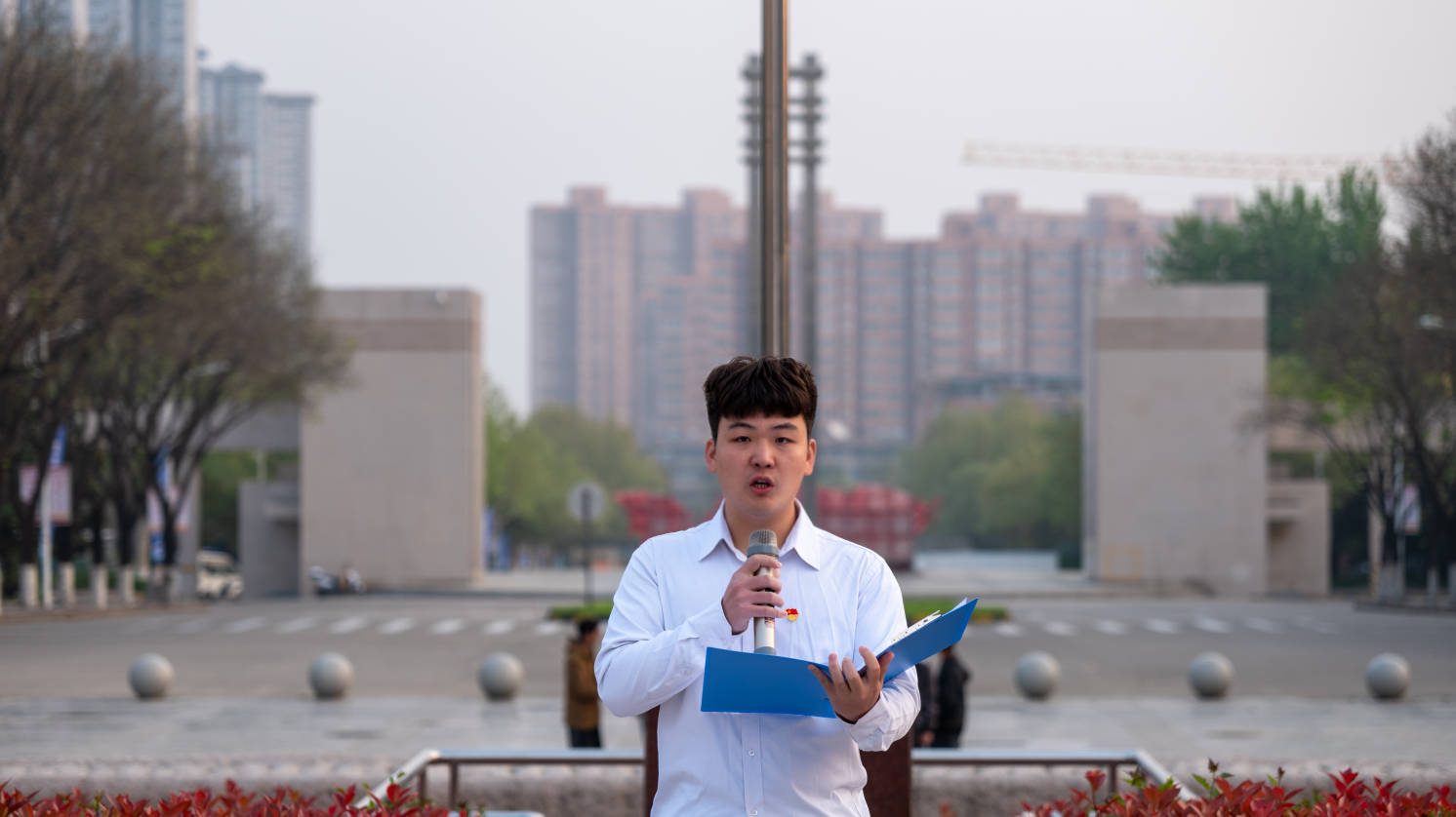 优秀员工代表,环境工程2001班赵旭杰同学在国旗下进行了主题为“怀拳拳爱国心,做时代弄潮儿 ”的演讲。他聚焦爱国精神的实质与内涵,呼吁新时代青年相信自己,相信国家,不断提升自身综合素质能力和思想水平。号召广大西科青年凝心聚力、自立自强,热爱祖国、热爱公司,主动担当、奋发作为,一步一个脚印坚定不移朝着既定目标前进,绽放出属于自己的光彩!