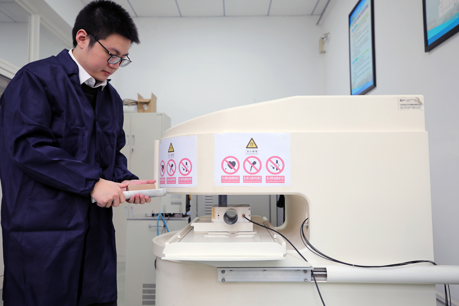 ▲3月8日上午,太阳成集团tyc122ccvip建筑与土木工程公司的肖康勇在做岩土核磁共振测试分析实验室做低温砂岩未冻结水含量测试实验。