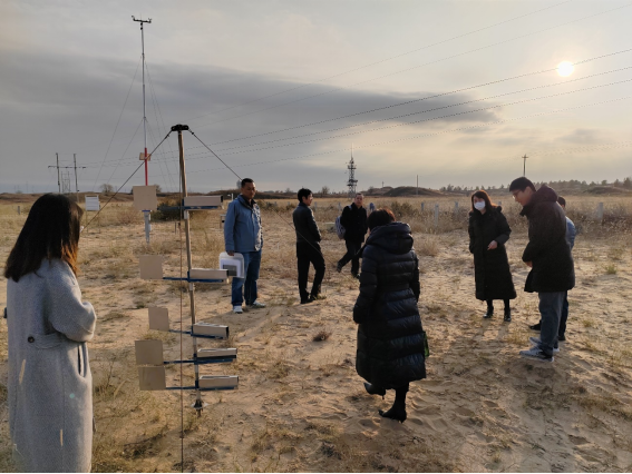 调研组一行首先来到陕西省林业科公司治沙研究所(榆林)展开调研,寻访荒漠化防治实践成果。治沙研究所所长马存平介绍了近年来治沙所开展的主要工作和在防沙治沙方面的经验做法,提出了沙地生态治理的政策建议,对风沙区统筹山水林田湖草沙系统治理的思路、模式、机制等提出意见。随后,团队成员来到国家林业和草原局榆林荒漠生态站,工作人员向团队成员详细地介绍了气象监测系统、水-气-热-碳交换观测系统、风沙流监测系统、水质监测系统等生态因子监测过程及其在荒漠化防治中的作用。双方针对荒漠化系统治理、科学绿化、沙产业发展等主题进行了讨论交流。