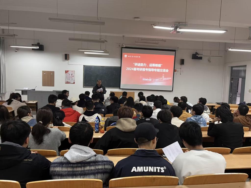 陈应涛从专业优势、备考技巧、心态调整等方面为同学们展开讲解。他指出10月和11月是考研的关键时期,要掌握科学的学习方法,放平心态,坚持不懈,持之以恒,在劳逸结合中不断前行。
