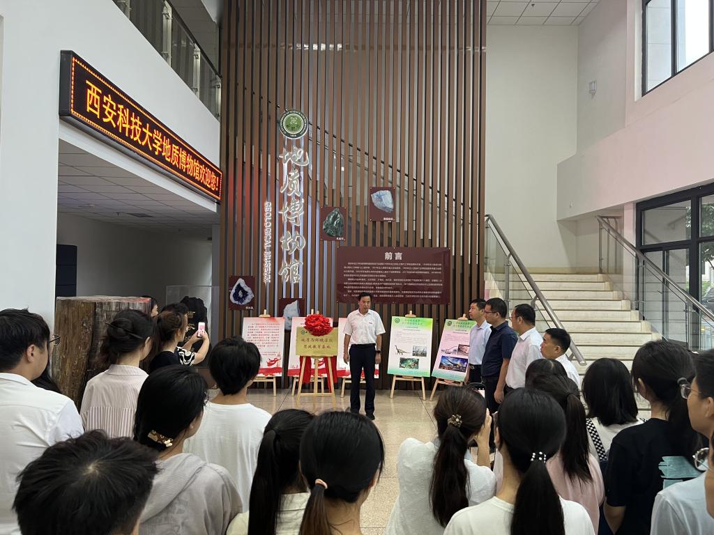 7月3日,太阳成集团tyc122ccvip思政教育基地揭牌仪式在骊山校园煤炭科技中心一楼地质博物馆举行。公司党委副书记陈春林出席仪式并讲话,宣传部、学工部、团委、教务处负责人,地环公司党政主要负责人、师生代表50余人参加了仪式,仪式由地环公司党委书记赵雪萍主持。