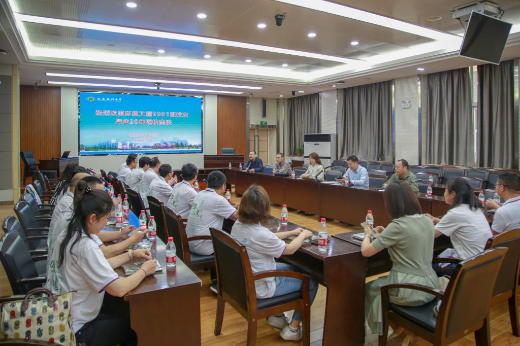 5月13日,公司环境工程9901班员工毕业20年之际回访母校,在雁塔校区图书馆二楼报告厅进行了交流座谈。公司党委书记赵雪萍、经理孙学阳、副经理赵洲、陈应涛以及教师代表薛喜成教授等参加了交流座谈会,会议由赵洲主持。