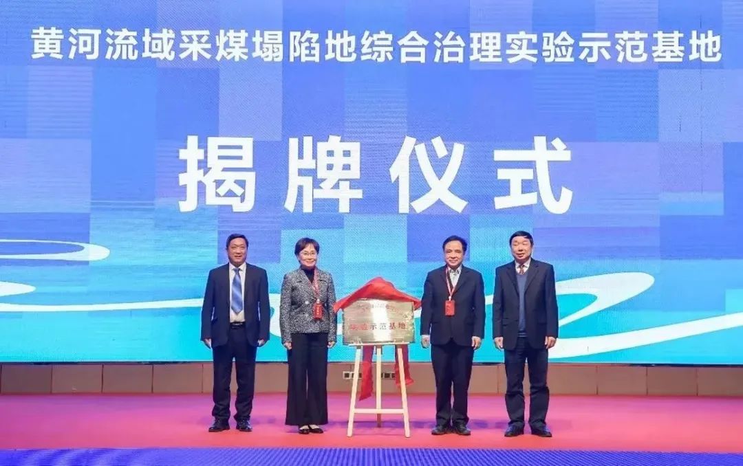 最后,由中国矿业大学刘波书记、中国矿业大学(北京)中国工程院院士彭苏萍院士、山东能源新汶集团邱集煤矿王永宝矿长和中国煤炭学会土地复垦与生态修复分会主任委员胡振琪教授共同为实验示范基地揭牌。