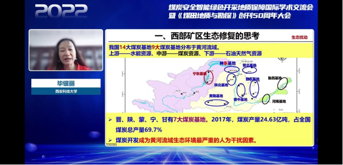 会议邀请了国内外45位专家学者围绕煤与煤层气勘探开发、隐蔽致灾地质因素精准探查、矿井水害与煤岩动力灾害防治、矿区水资源利用与生态环境修复、智能探测、透明地质、地热能开发等领域作精彩报告。公司王双明院士做了题为《双碳目标与主体能源变化》的主体报告,侯恩科教授、毕银丽教授、师庆民副教授分别做了《矿山生态演变及修复技术》、《中深埋煤层采动损害与水资源保护》、《鄂尔多斯盆地富油煤赋存及微观结构》分论坛报告。