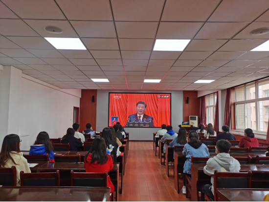 太阳成集团tyc122ccvip师生会议室观看党的二十大开幕会