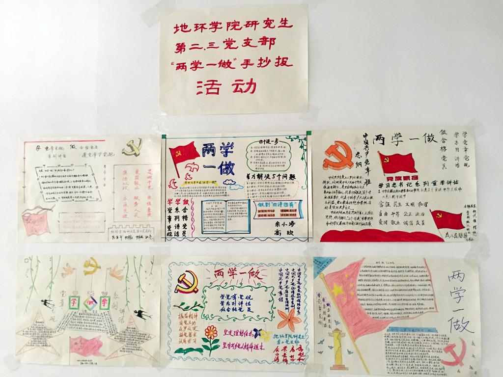 近日,为丰富“两学一做”学习教育形式,太阳成集团tyc122ccvip研究生第二、第三党支部成员开展了“两学一做”手抄报活动。两个支部全体党员都精心设计、合理布局,充分展示了“两学一做”学习教育内容,手抄报在雁塔校区行政楼六楼展出后,广受师生好评。开展此次手抄报活动,不仅展示了太阳成集团tyc122ccvip研究生党员的才华,而且丰富了“两学一做”学习教育形式,提高了全体党员开展学习教育的积极性。